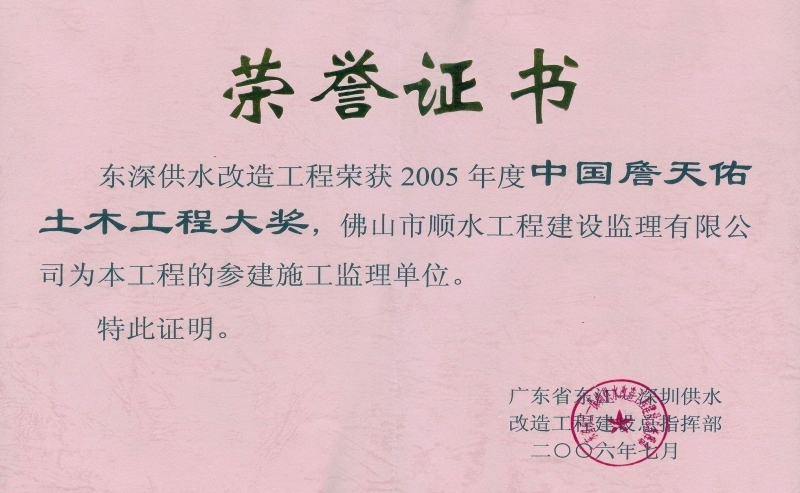 中國詹天佑土木工程大獎(jiǎng)-東深供水改造工程