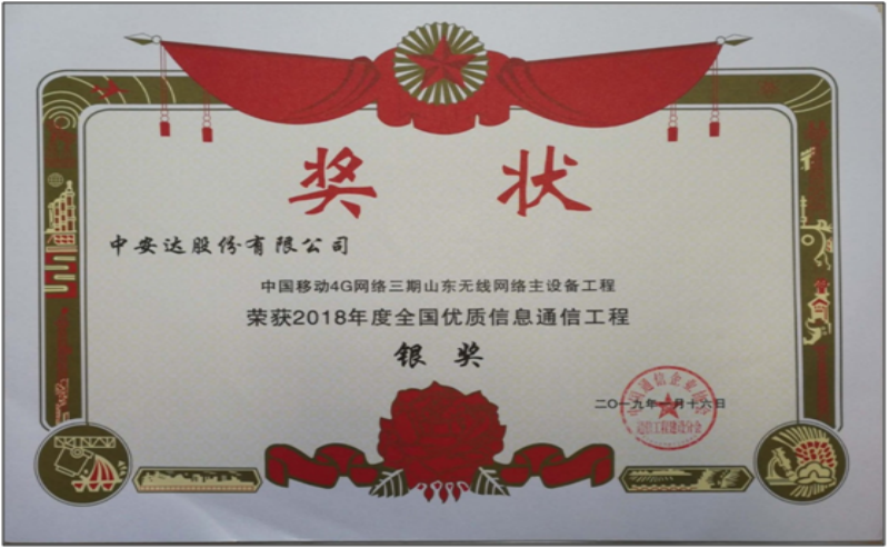 全國優(yōu)質(zhì)信息通信工程銀獎(jiǎng)-中國移動(dòng)4G網(wǎng)絡(luò)三期山東無線網(wǎng)絡(luò)主設(shè)備工程