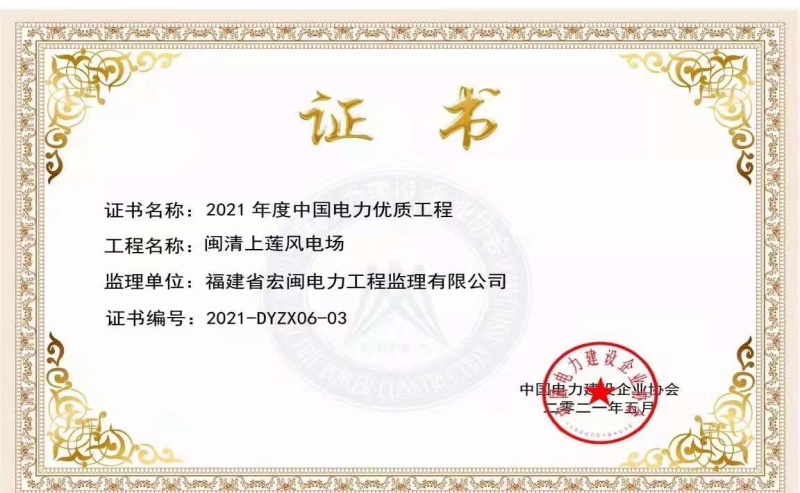 中國電力優(yōu)質(zhì)工程-閩清上蓮風(fēng)電場