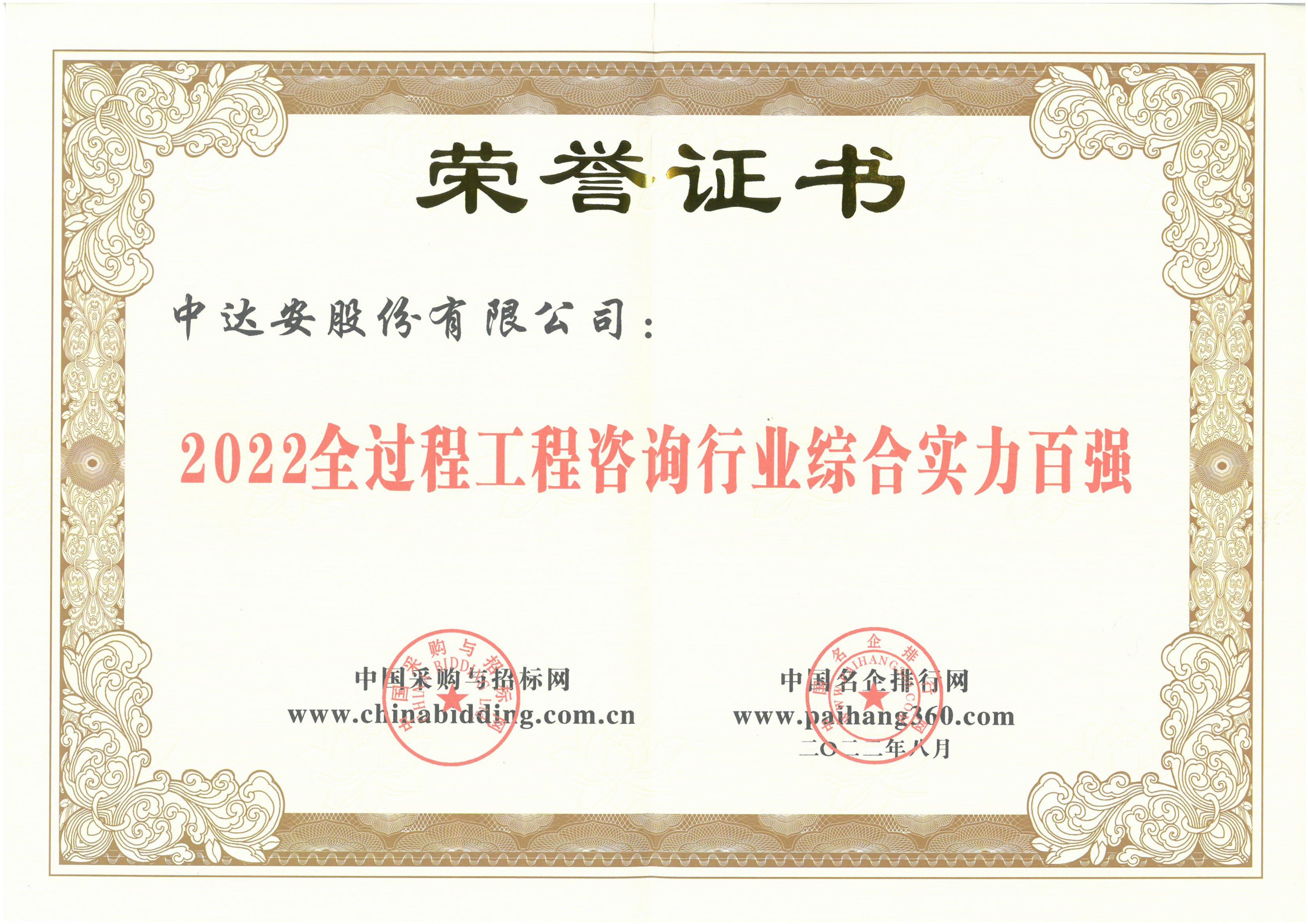 2022全過程工程咨詢行業(yè)綜合實力百強(qiáng)